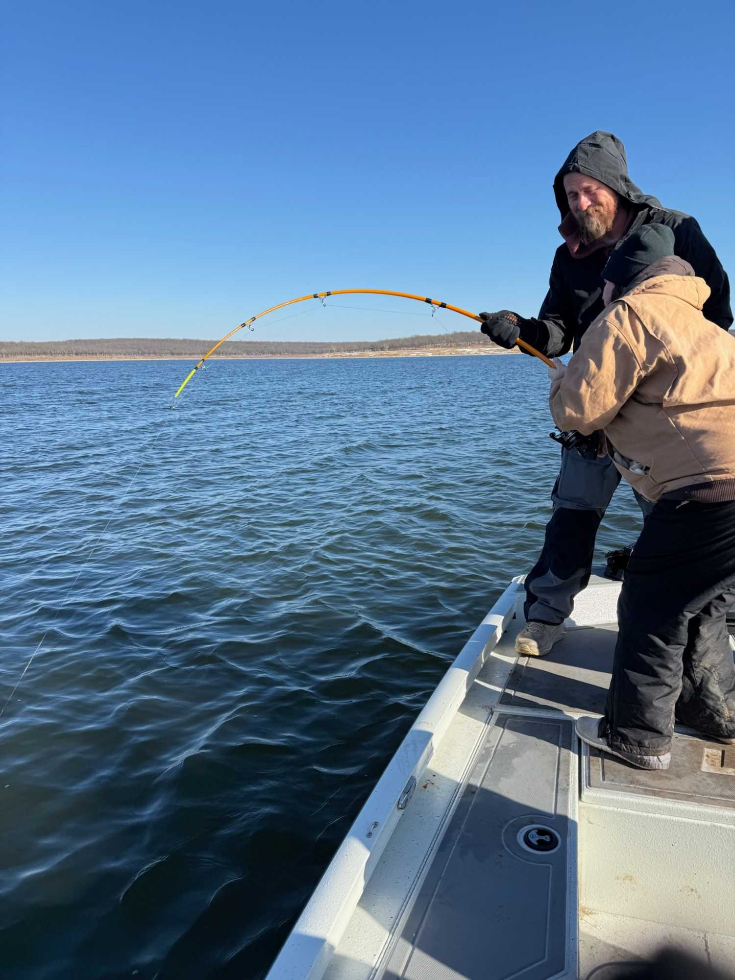 Experience the excitement of Keystone Lake fishing through our gallery, showcasing unforgettable moments with happy anglers and impressive catches. From hybrid striped bass to crappie, our photos highlight the best of family-friendly fishing trips, private Keystone Lake charters, and guided paddlefish adventures. See firsthand why Gone Fishin Guide Service is the trusted choice for local lake fishing, and get inspired to plan your next trip with an expert guide who knows the hotspots.