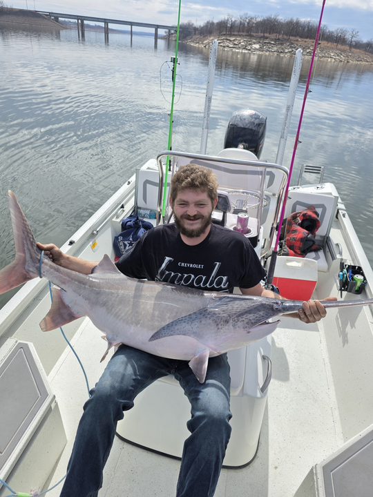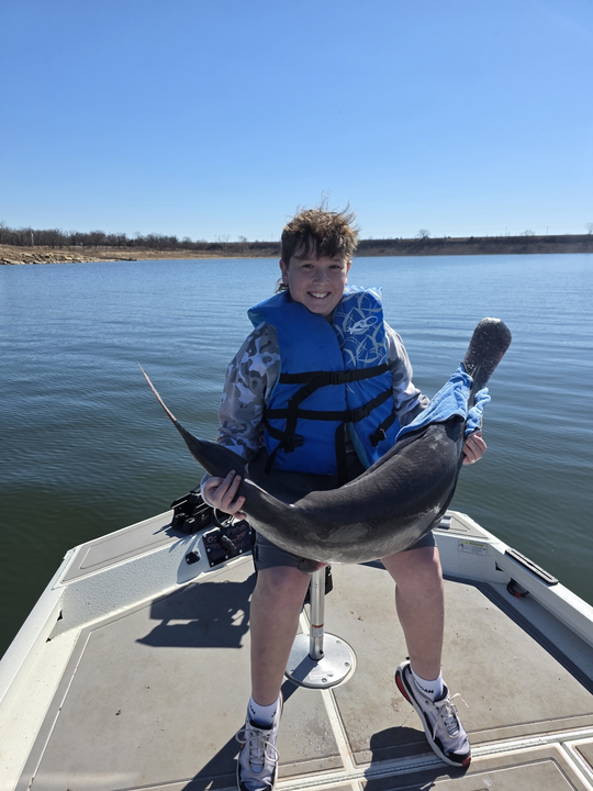 Big spoonbill makes for a memorable Keystone Lake catch!